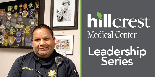 There is a difference between a response and a reaction. It is as clear of a distinction between Hillcrest Medical Center Safety and Security Director and Chief Security Officer Jesse Millan and fictional character Barney Phife, the deputy sheriff in the Andy Griffith Show whose framed photograph hangs on the wall of Jesse’s office. “It is a daily reminder of what not to be,” says Jesse of the alarmist, emotional and often inept law enforcement image Barney portrays. Responding, instead of reacting, to crisis and emergency situations is the foundation of Jesse’s 24 year career in hospital security. “I love helping people. Customer service, I personally believe, is one of my strengths. It’s not about going into situations thinking you are 10 feet tall and bullet-proof. This job is about customer service and nine out of 10 situations you can de-escalate just by talking.”